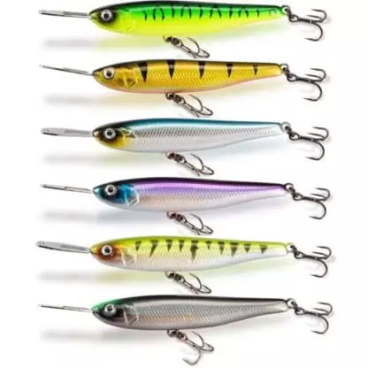 - Vorm: kleine vis-imitatie die het beste resultaat geeft bij gebruik direct aan de wateroppervlakte.